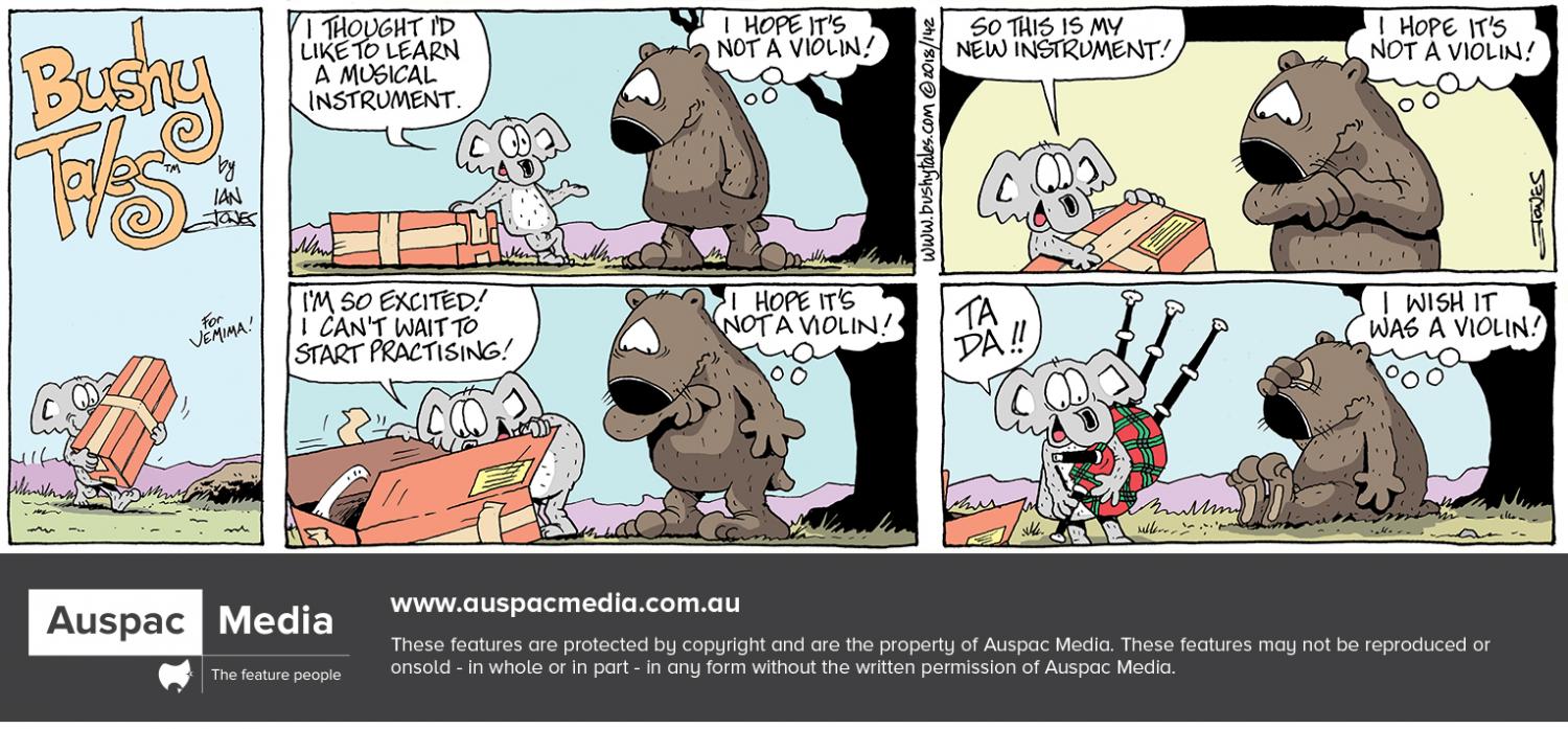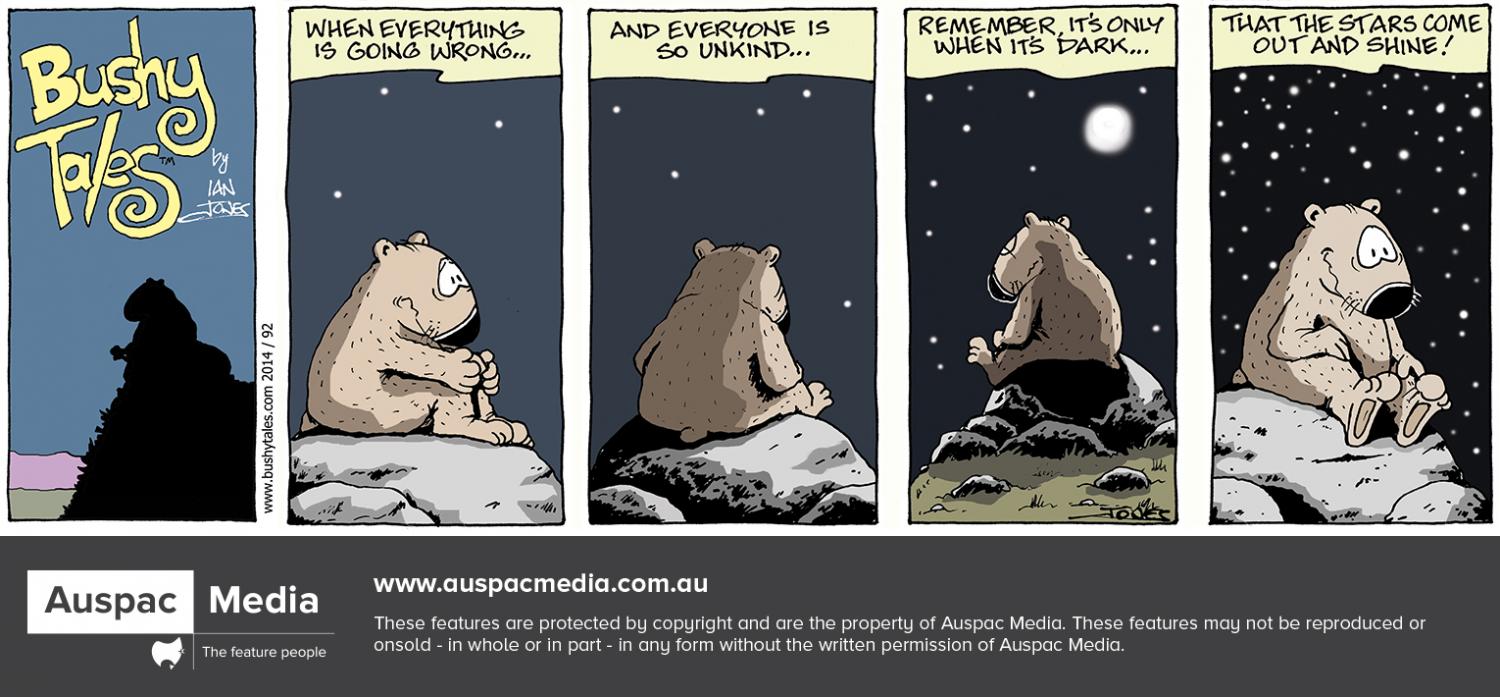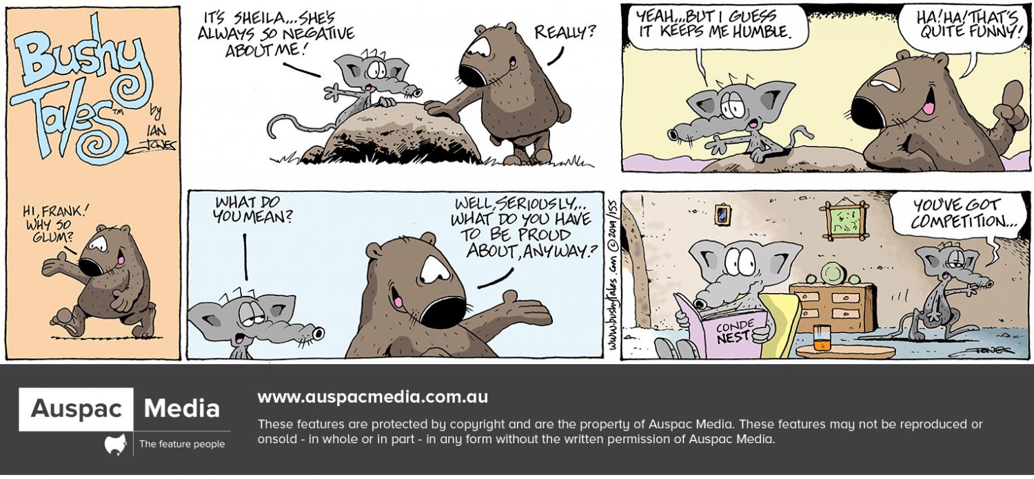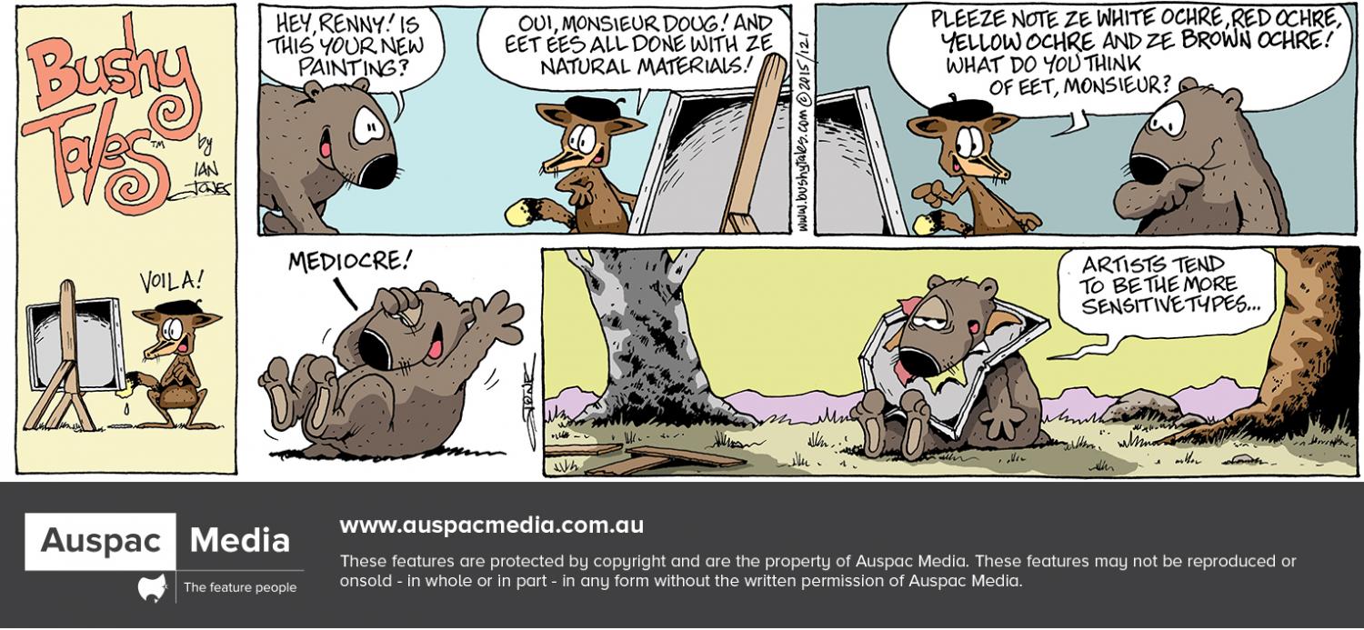 Bushy Tales is a beautifully crafted Australian comic strip with excellent humour, educational potential and great warmth!